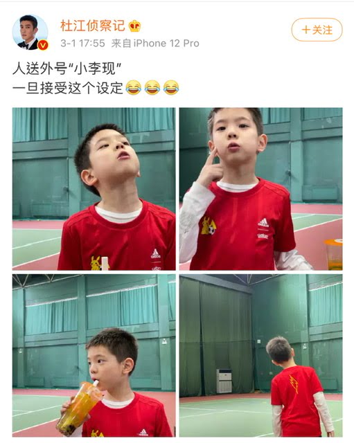來!你來品!杜江1號晚上發文,貼出了兒子嗯哼的近照,表示:「人送外號小李現,一旦接受這個設定」