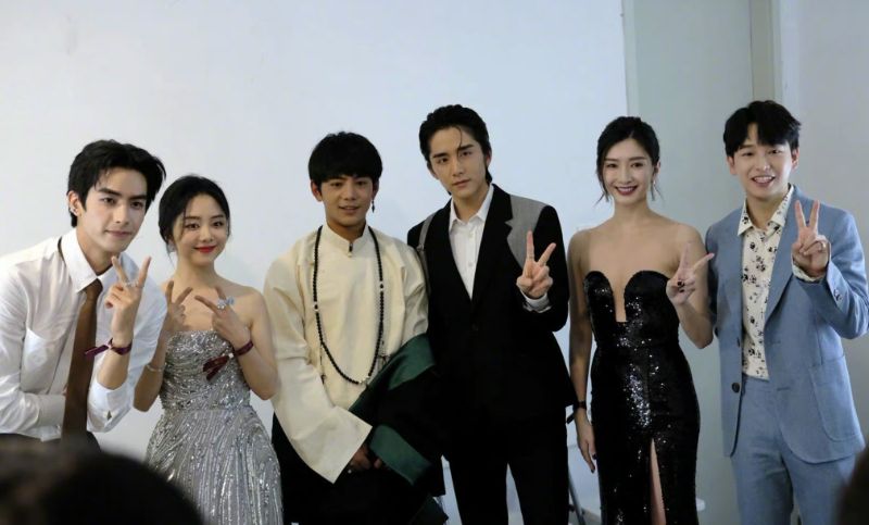 宋威龍、譚松韻、張新成、江疏影和彭昱暢也在後台和丁真合影!