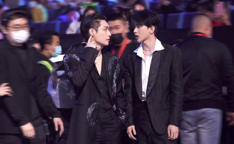 而之前一直好奇張藝興是否會和他們同座,事實上成為“第四者”的是我們懵懵的王一博!表示王一博這張也很出圈,因為似乎留意到只有自己戴了自備的黑口罩,其他藝人都戴上了大會準備的白色口罩啊!