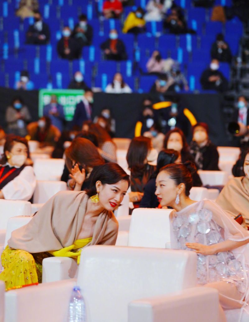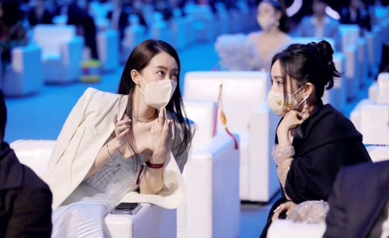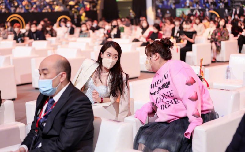 提到楊紫,也因為這次的微博之夜結識了新朋友賈玲!全都要感謝這張錯位圖,拍起來像賈玲坐在楊紫腿上!