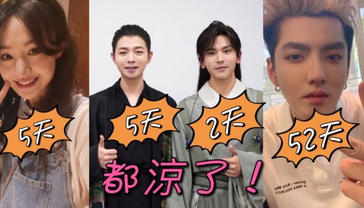接著是吳亦凡在6月初被都美竹爆出冷暴力,隨後牽扯出後面一連串的爭議,最後因涉嫌強姦罪涼了,用時約五十二天!
