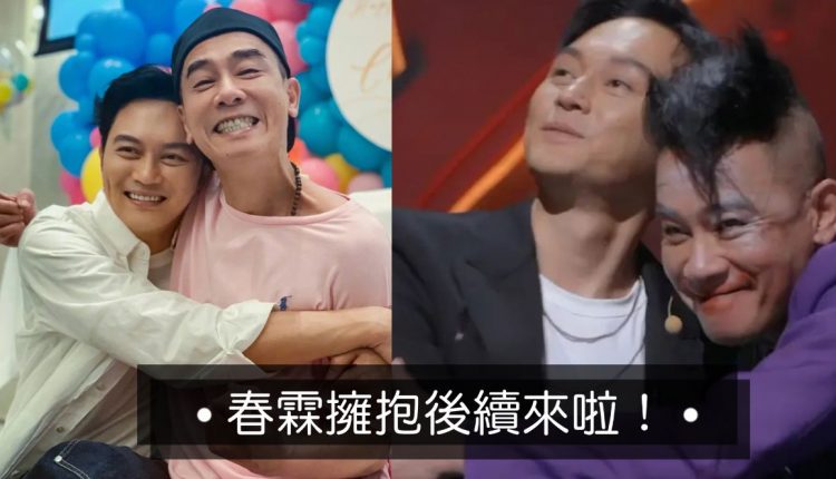 而這兩人也在台下,也重現了之前被袁詠儀公開在微博上的合照,原版本是Chilam小鳥依人般抱著陳小春👇