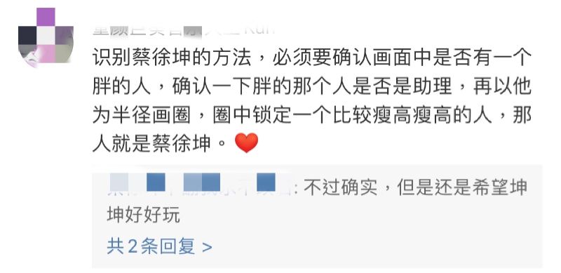粉絲還教學如何識別蔡徐坤的方法,就是必須要確認畫面中是否有一個胖的人,哈哈哈哈哈哈哈!