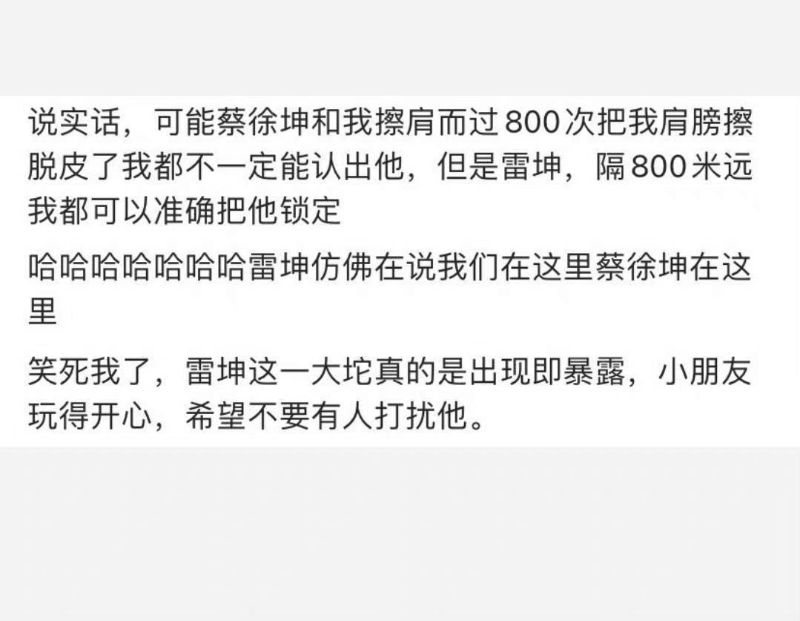 沒錯!粉絲都知道,蔡徐坤的助理雷坤就是他的初中同學,由於長得很“高大威武”簡稱“一大坨”十分好認,這兩人一胖一瘦每次出現都顯眼得不行,就算沒第一時間發現蔡徐坤,只要發現了雷坤,那麼他身邊十之八九就有我們蔡小葵!