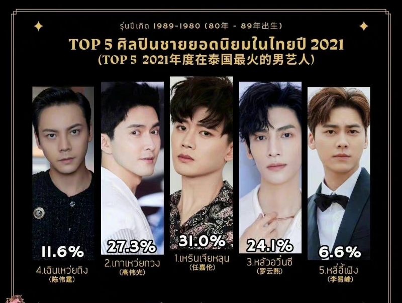 2021年在泰國最火的中國愛豆前五: