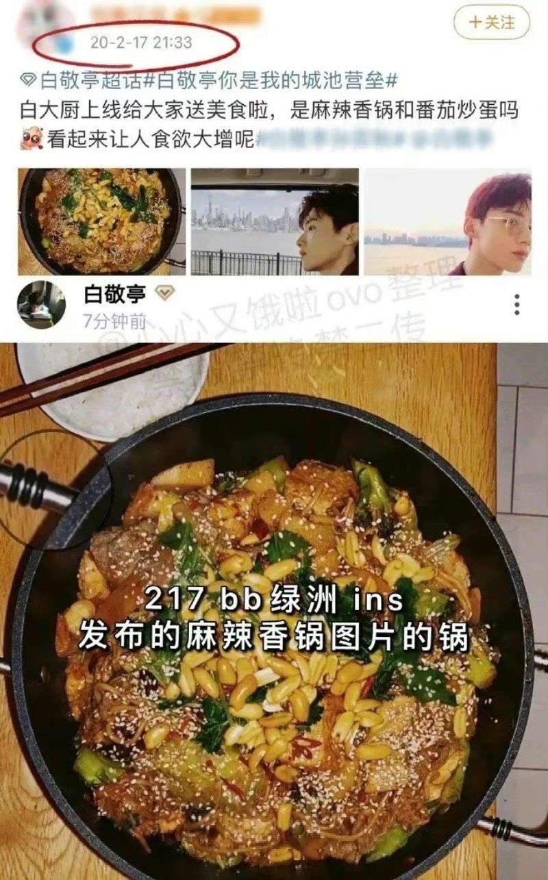 另外,白敬亭在20年曾公開了一道麻辣香鍋的照片,這裡留意鍋子的握柄👇