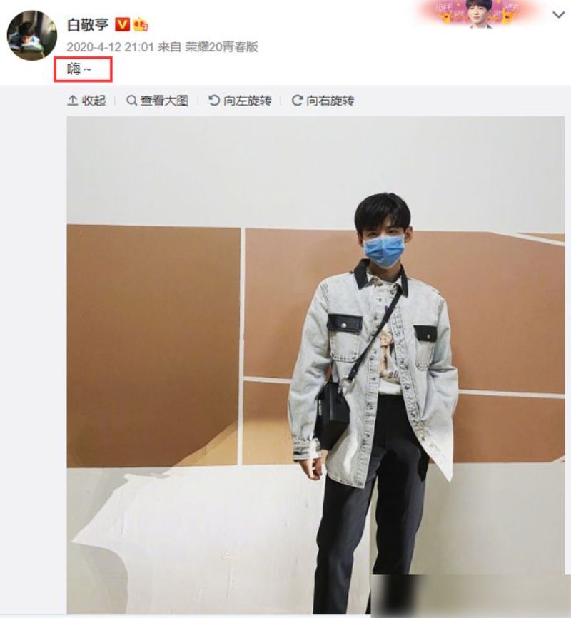 同一天,白敬亭隨後更新微博,只配文:「嗨~」被解讀成在回應馬思純的微博。