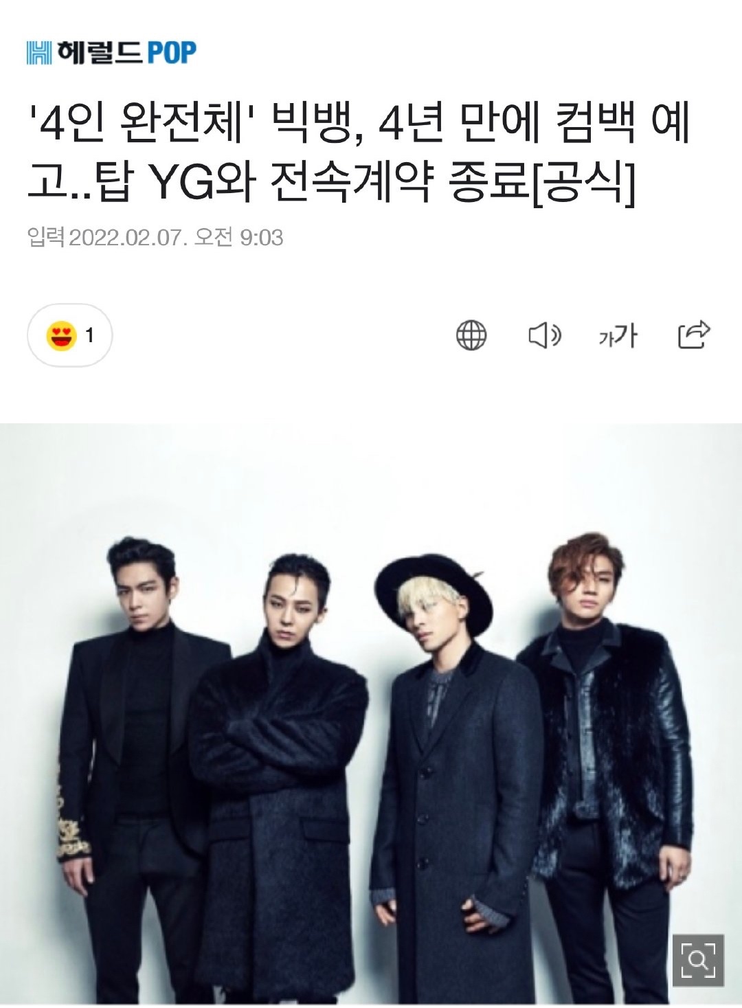 真的等來回歸了!!是達,根據韓媒,7號報導,BIGBANG即將在春天回歸!