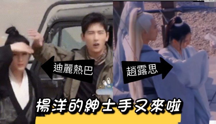 但不得不說,楊洋一直很照顧合作的演員,像之前在《你是我的榮耀》拍攝沙漠部分時,也會幫忙熱巴遮擋風沙!