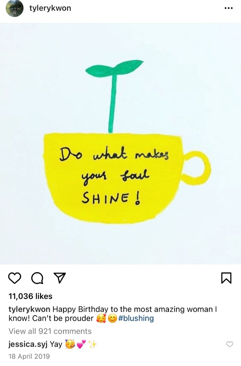 權寧一曬出了他和Jessica的牽手照,並寄語生日快樂,還特別標籤了“靈魂伴侶”。