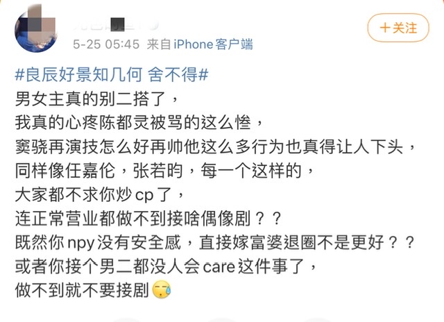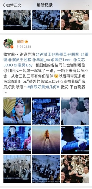 那就是男主竇驍的收官文,被劇迷罵翻天!先是艾特錯導演編輯了兩次微博才對,接著被發現沒有艾特女二趙櫻子,最大導火線還有放出的花絮照中,全都完美避開女主陳都靈,被劇迷罵刻意避嫌很下頭!