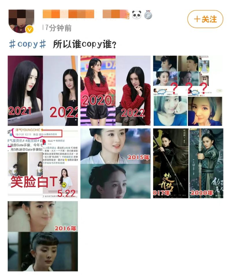 但趙麗穎粉絲同樣不服氣,整理了一系列”楊冪抄襲趙麗穎“的指控👇