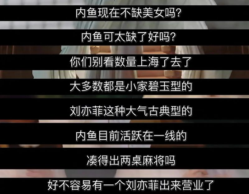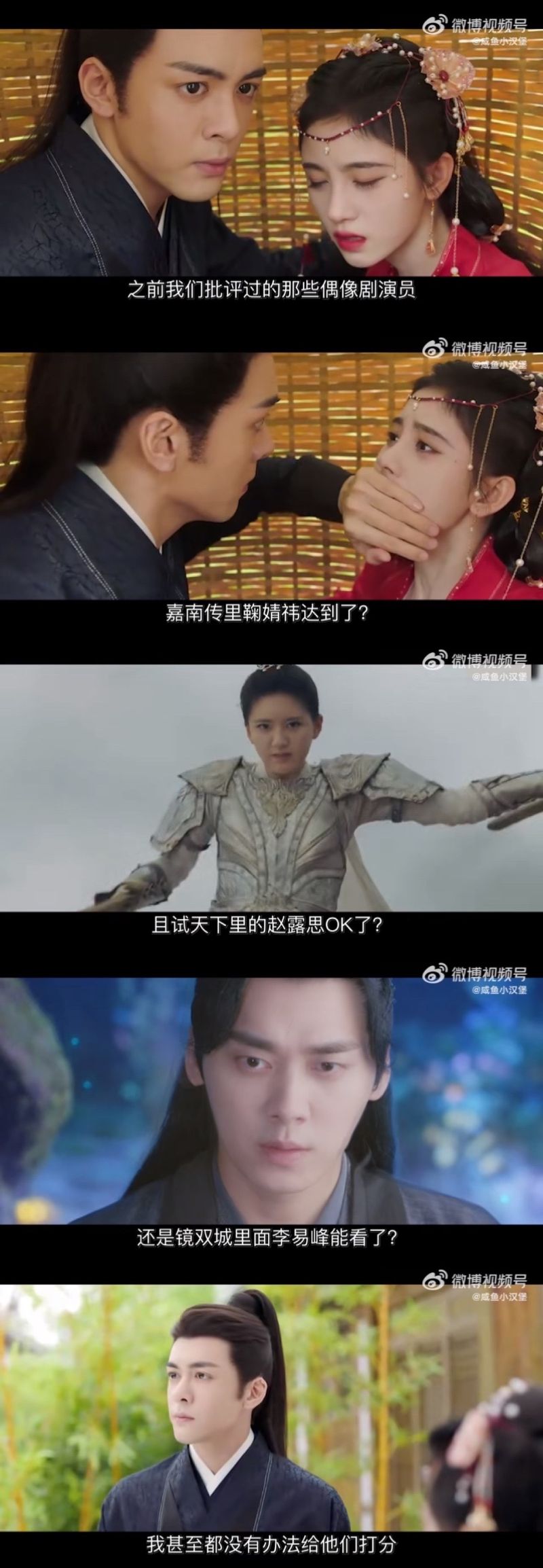 片段尾聲還要強調劉亦菲演技6.8分,再拉了幾家下場對比:「之前我們批評過的那些偶像劇演員,嘉南傳裡的鞠婧禕達到了?且試天下裡的趙露思OK了?還是鏡雙城裡面的李易峰能看了?我甚至都沒法給他們打分!」