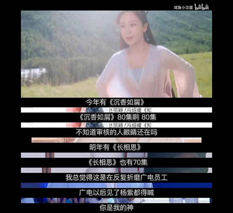 最後,還不忘cue了90花楊紫,表示楊紫今年有《沉香如屑》80集,明年有《長相思》70集,說楊紫的劇都是爛劇,是在折磨廣電的員工,不知道審核的人眼睛還在嗎?