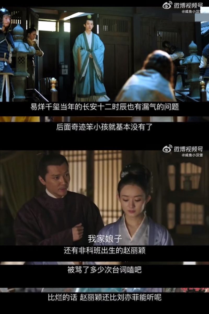 接著誇起了易烊千璽在《長安十二時辰》也是有台詞問題,不過後來在《笨小孩》中已經改正很多,然後拉了同是85花的趙麗穎,說了趙麗穎以前也是這樣,如果說爛,趙麗穎說的比劉亦菲還好,意思就是…劉亦菲還能有進步的空間!