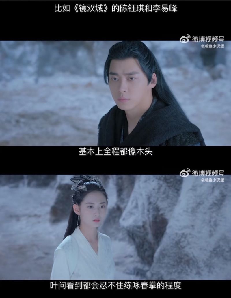 說完了劉亦菲的短處台詞,就誇起了劉亦菲的演技,拉了《鏡雙城》裡面的陳鈺琪和李易峰來對比,說兩人全程像木頭(⊙o⊙)…是葉問看見都會忍不住練詠春拳的程度👇