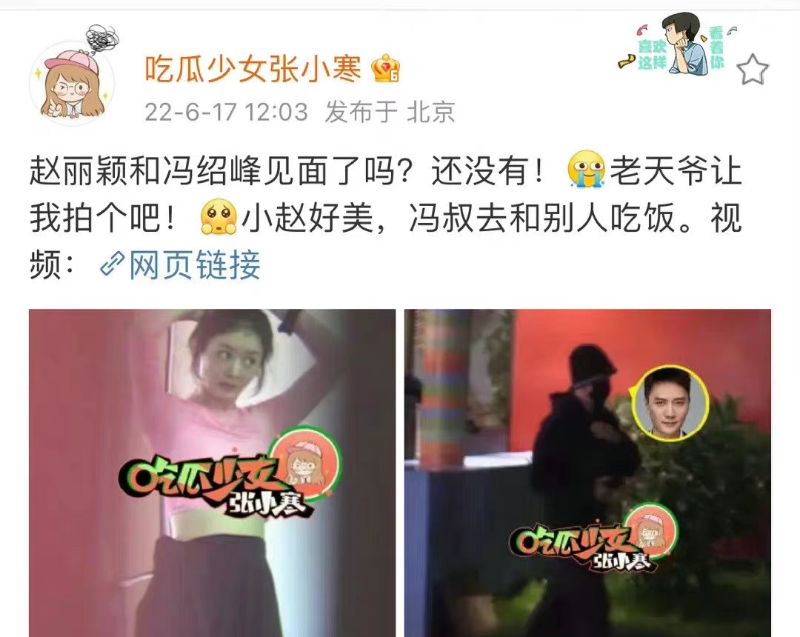 隨後,就有另一個營銷號發文,表示張小寒是躲在櫃子裡拍的趙麗穎。這個說法一出來,立刻上了熱搜,不少網友都認為這樣的偷拍方式,簡直就是變態、私生,可以報警的程度👇