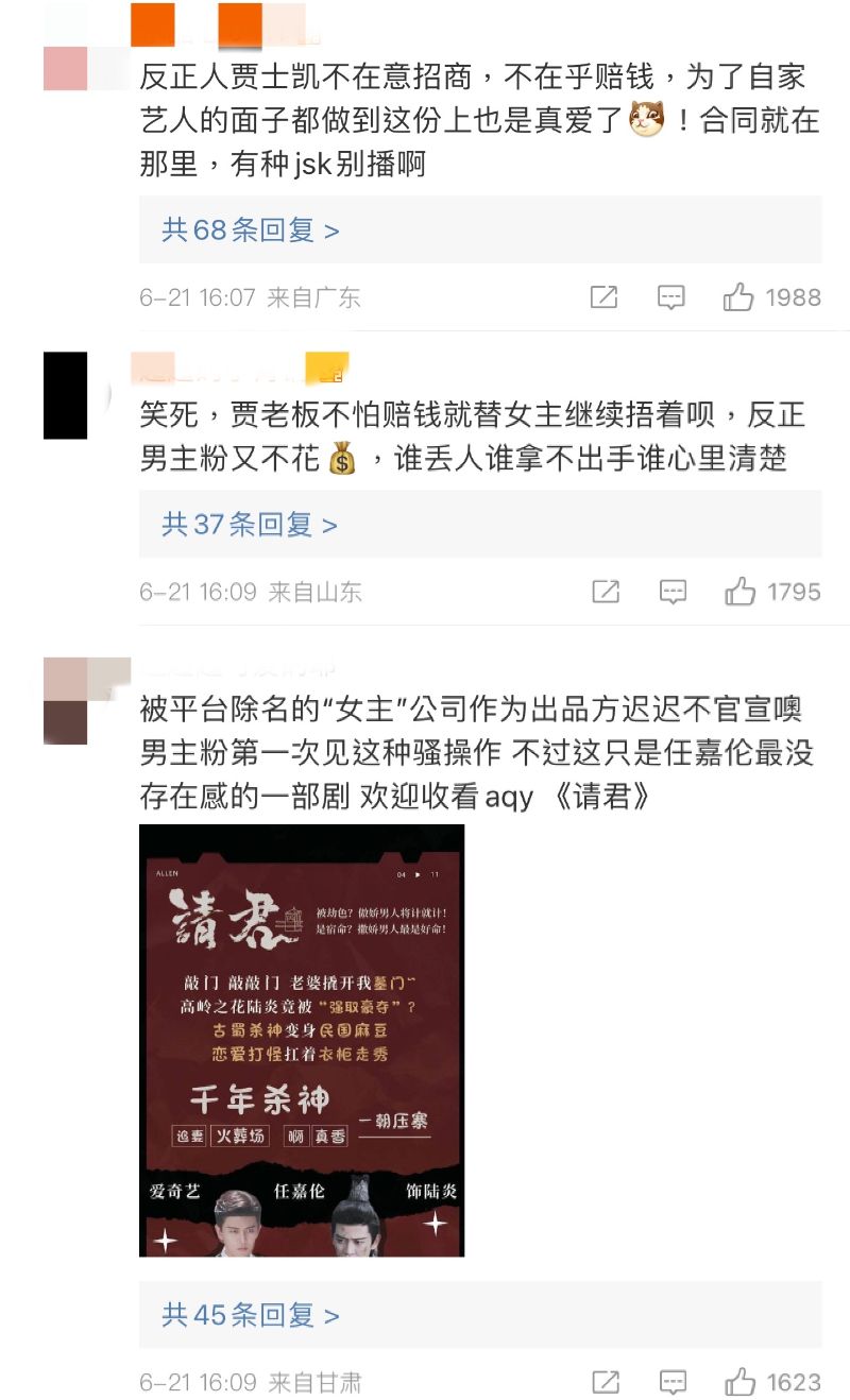 隨著官方至今不官宣,兩方粉絲就開始撕番!任嘉倫粉絲的立場,認為是賈士凱方面毀約,答應了一番男主,但至今還是不官宣!