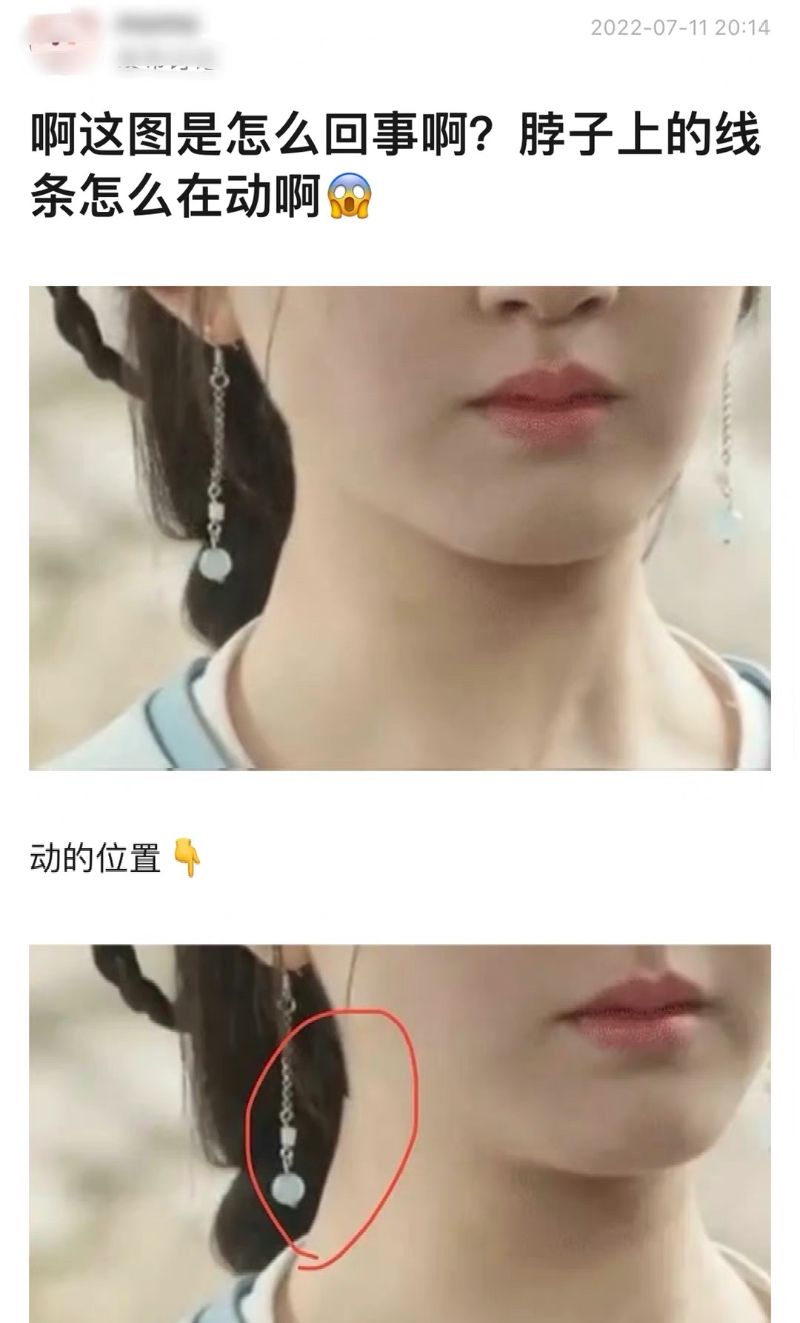 但就有網友發文,表示這段劇情裡,趙露思脖子上的線條居然在動?
