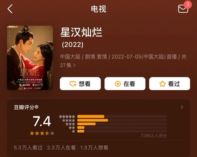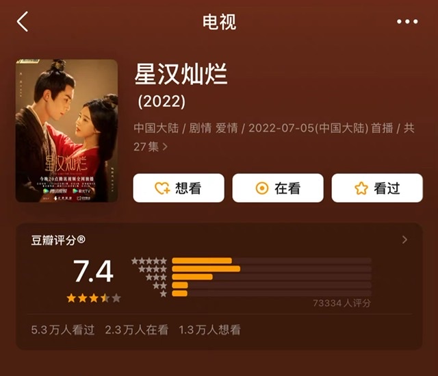 嗚哇!《星漢燦爛》豆瓣開分啦!是達,吳磊、趙露思主演的《星漢燦爛》可以說人氣十分高,開播至今話題不斷!