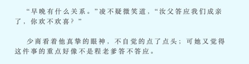 重點是,當五皇子調侃少商,表示欲將她納為妾時,我們專愛打直球的凌將軍再度上線,開口就說程少商已經有親事了!