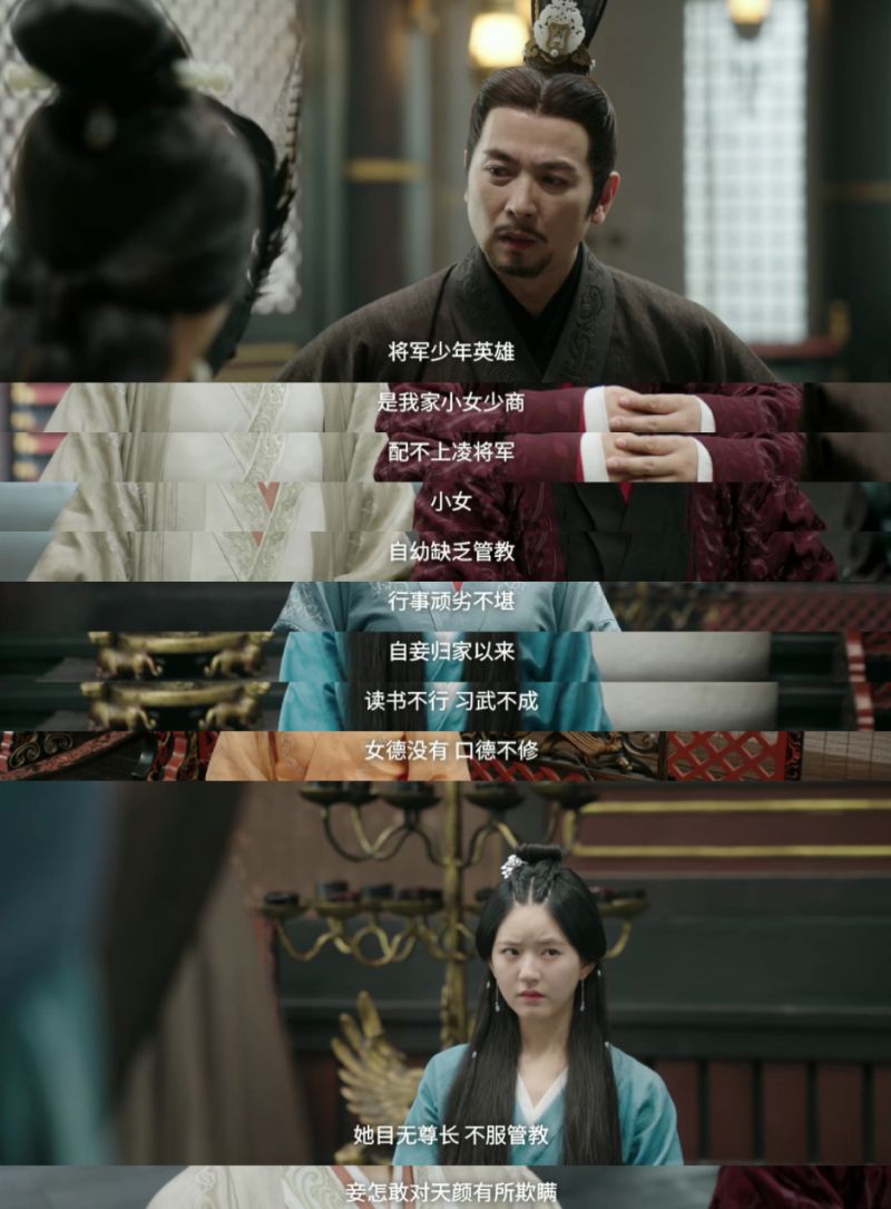 劇版從這裡開始大篇幅修改,原著中,面對Wendy的提親,程氏夫婦就算不想也被迫答應;但在劇版中,卻安排了蕭主任化身“毒母”,當眾羞辱自己的女兒,在皇 上及女眷面前說少商粗鄙不堪、不配高攀,簡單來說就是評得一文不值,讓不少觀眾聽得拳頭都硬了👇