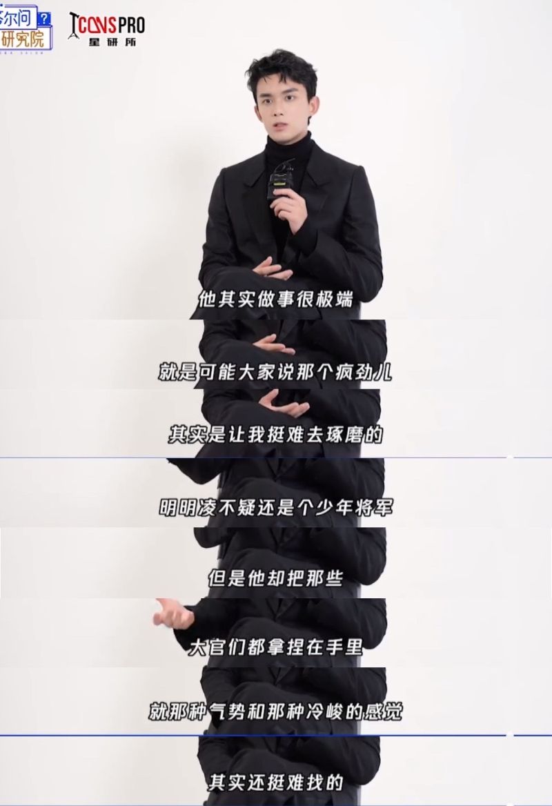 吳磊理解的凌不疑,是個做事很極端,對愛情很極端,對復仇也很極端的人,也就是大家說的那個瘋勁兒(這點和網友刷的「凌不疑瘋子」絕對符合),就是這點讓吳磊覺得很難去捉摸。他覺得凌不疑明明還是個少年將軍,但卻經常去對抗朝廷上的高官,也會把比他年紀大很多的將軍、甚至是大官們拿捏在手裡,這種氣勢和冷峻的感覺,是吳磊覺得挺難找的部分。