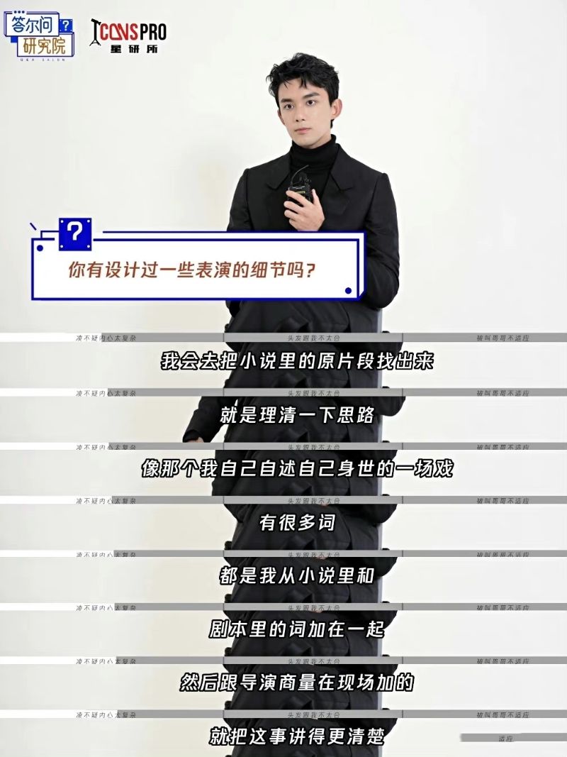 為了更好的理解劇情和角色,吳磊不但把原著小說都看完了,甚至還會把小說中的原片段找出來,理清自己的思路。比如提到凌不疑身世的這場戲,他就引用了很多小說中的詞,和劇本結合在一起,在和導演商量後直接加進去,目的是把整段劇情講得更清楚。