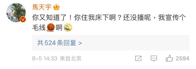 但我們馬天宇果然是內娛下場闢謠第一人,直接衝到該貼文留言:「你又知道了!你住我床下啊?還沒播呢,我宣傳個毛線啊!」直接打臉營銷號造謠!