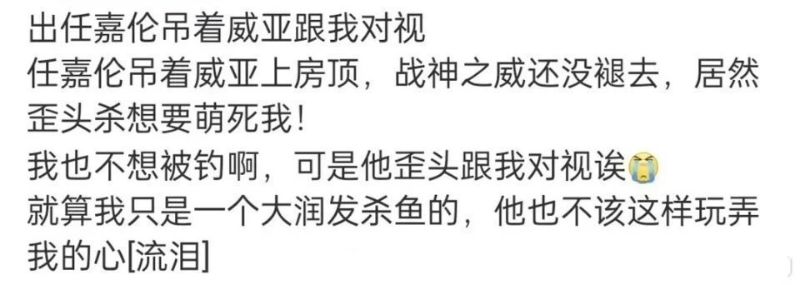 再來看,「任嘉倫歪頭跟我對視唉!就算我只是一個大潤發(超市名字)殺魚的,他也不該這樣玩弄我的心」哈哈哈哈哈哈哈哈哈哈哈哈哈哈哈哈哈哈哈哈哈哈哈,這都啥和啥啊!