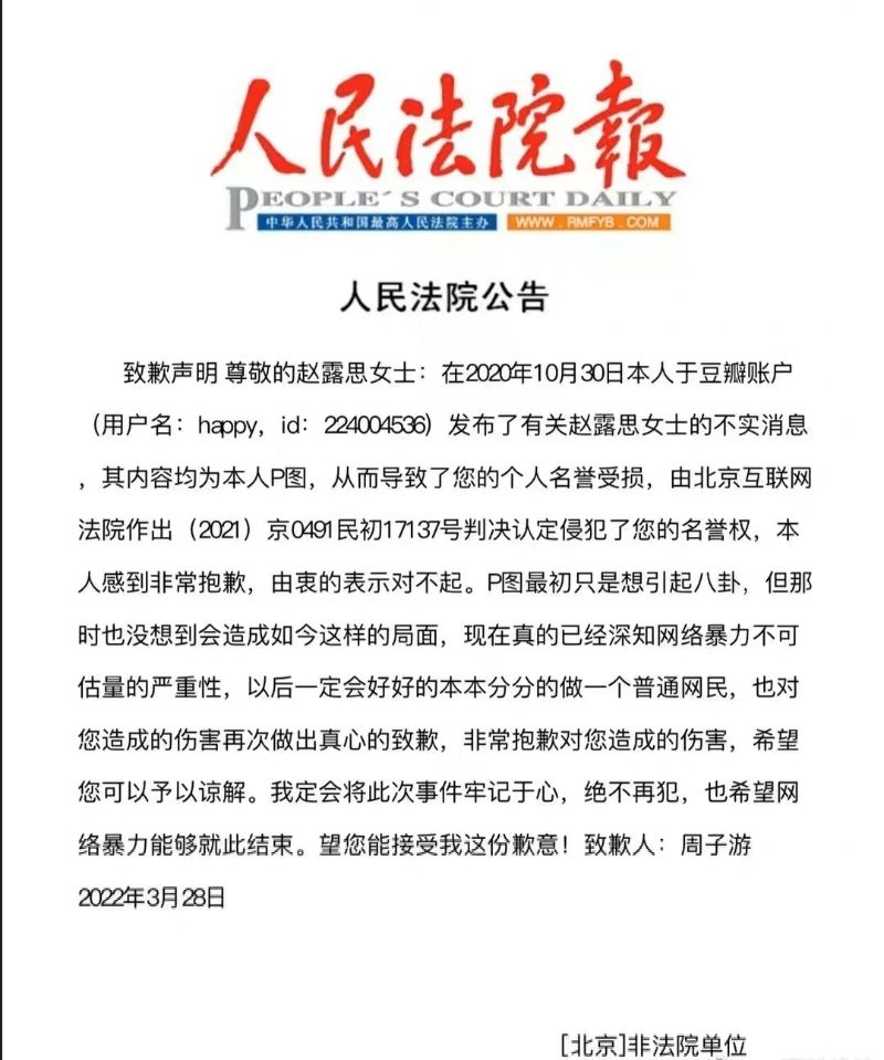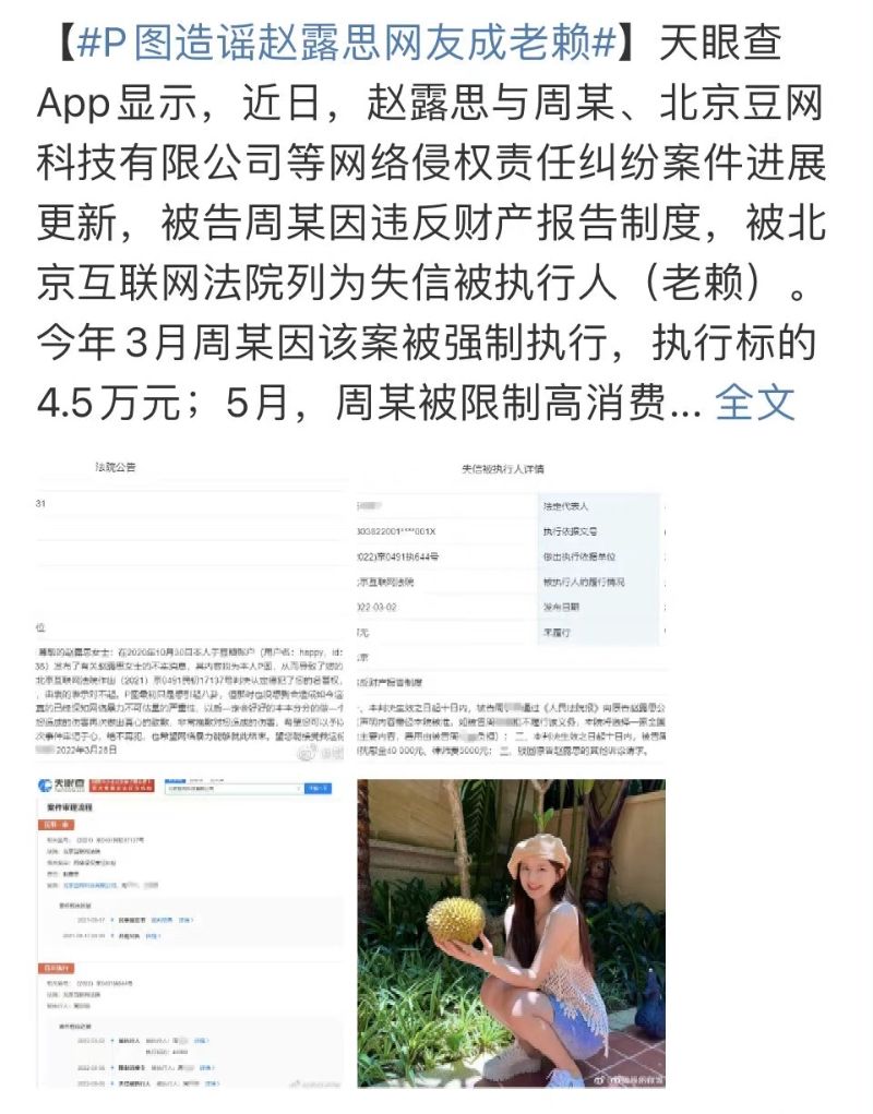 結果沒想到20年突然有網友P圖造謠,表示趙露思表白肖戰並秒刪博。但隨後,趙露思方成功維權,造謠網友發文道歉,最後還因為繳款問題變成失信人👇