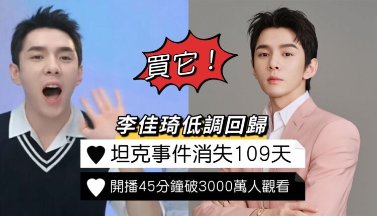 +7回歸!坦克事件「被消失」109天!李佳琦低調回歸!直播間人氣爆棚!