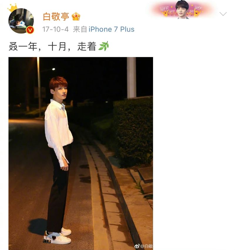 2015年10月1日,白敬亭發文「又一年,十月,走著」