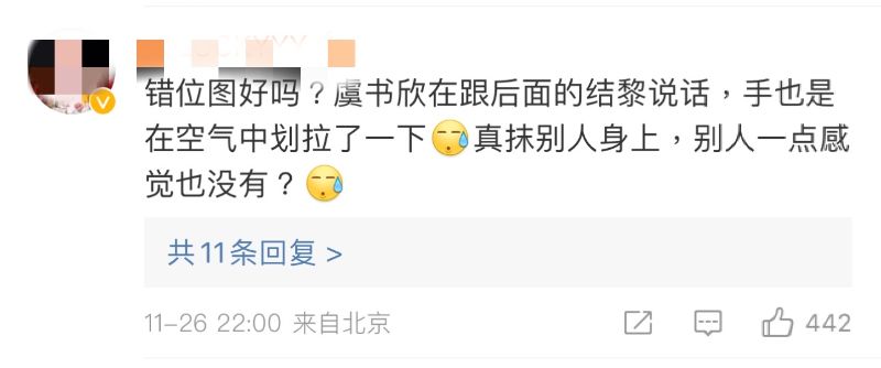 也有粉絲公開了澄清圖,表示虞書欣和王鶴棣中間隔很遠,真的是錯位圖👇