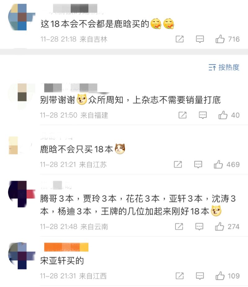 雖然網友都默認她不是流量,銷售不好也合情理,但關曉彤粉絲隨後發出來的洗白說法,卻引起其他家藝人粉絲不滿…來看看,關曉彤粉絲截圖了其他藝人的同雜誌銷量,力證這本雜誌的銷量本來就很“虐”,像是5月發售的李宇春封面,賣出了一本👇