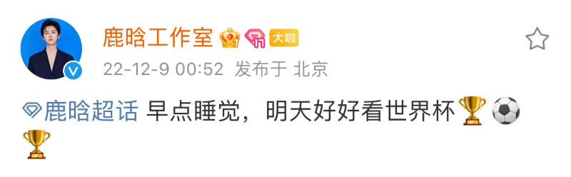 掛在熱搜一個晚上之後,鹿晗工作室發文表示:「早點睡覺,明天好好看世界杯」疑似闢謠!