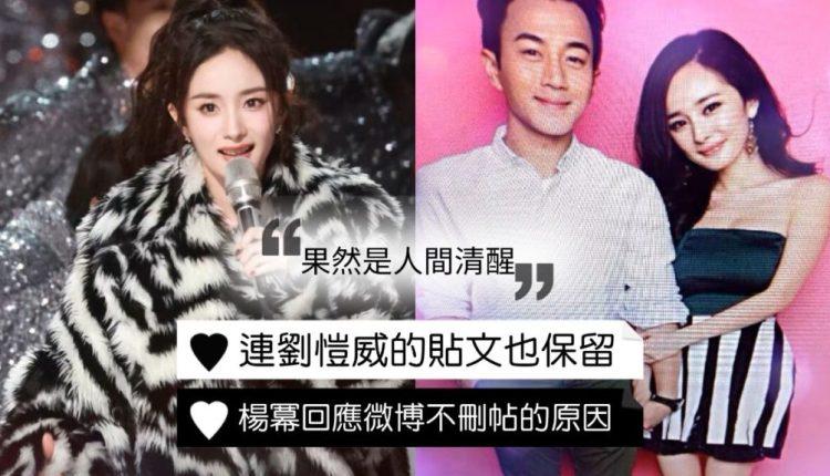 果然是人間清醒!就連劉愷威的貼文也依然保留!楊冪回應網友考古自己的微博!
