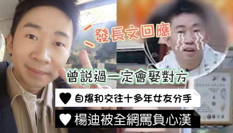 楊迪人設也翻車?自曝和交往10多年女友分手!曾放話絕對會娶對方!被罵上熱搜後發長文回應!