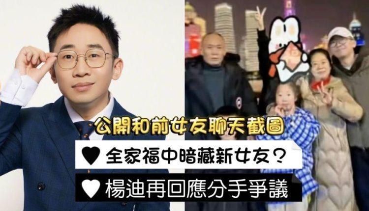 楊迪分手爭議後續!媽媽晒全家福驚現「新歡」?連媽媽也慘遭被罵!再發長文公開「前女友聊天截圖」回應!