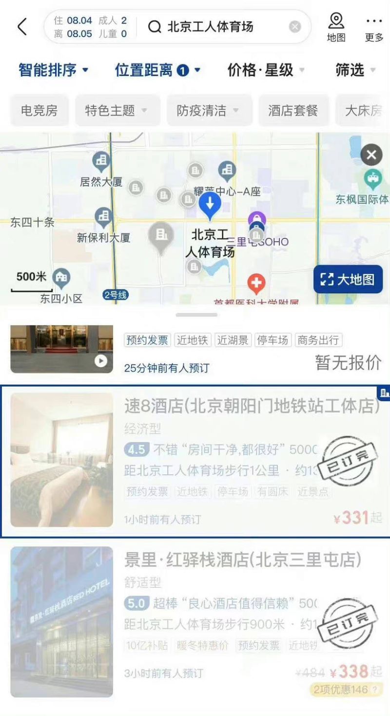 沒錯,網友發現在網傳演唱會場地:也就是北京工體附近,半年後的酒店(在8月4號至7號間)已經全!都!被!訂!光!啦!!!這裡值得一提的是,雖然網傳演唱會日期是在8月12-26號之間,但帝國姐姐們看起來,覺得演唱會在TFBOYS出道日8月6日期間舉辦的可能比較大啊!