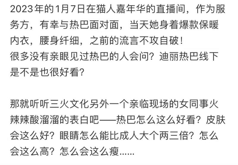 同時又有網友扒出迪麗熱巴的春節營業圖,是22年9月份拍攝的👇