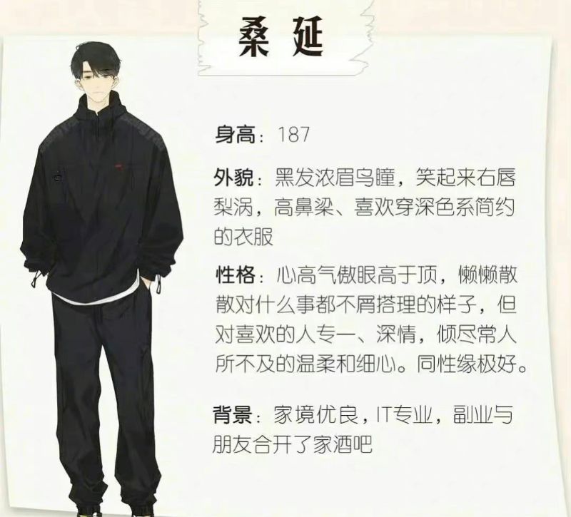 先來看看,原著中的桑延,身高187,笑起來右唇有梨渦,傲嬌毒舌,囂張跋扈的不可一世,懶懶散散對什麼事情都不感興趣的樣子,但對喜歡的人專一、深情,傾盡常人所不及的溫柔和細心,可以瞞著全世界暗戀溫以凡長達九年。