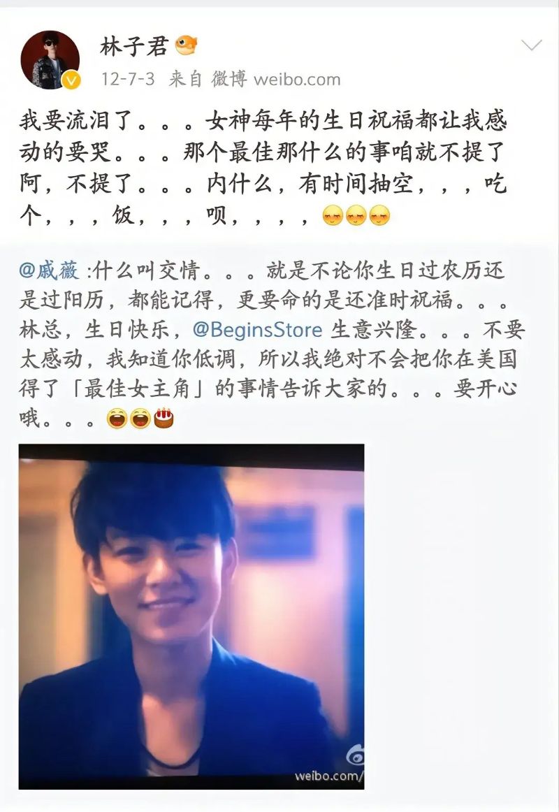 戚薇也公開發過生日祝福給林子君👇