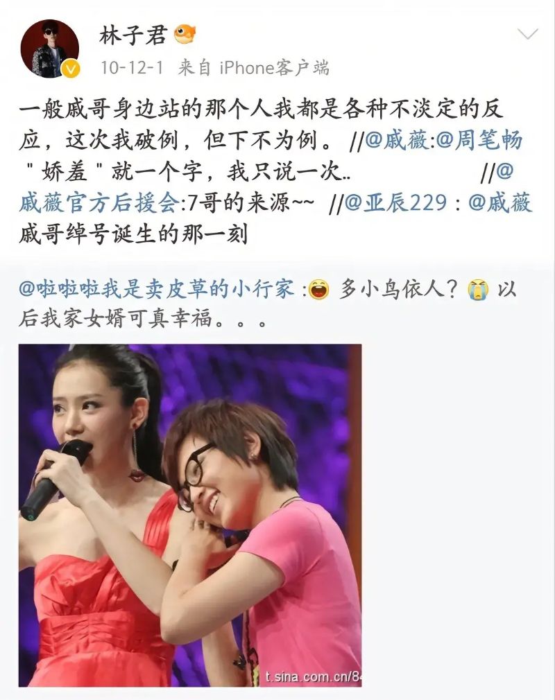 林子君的微博中,不乏戚薇的名字👇