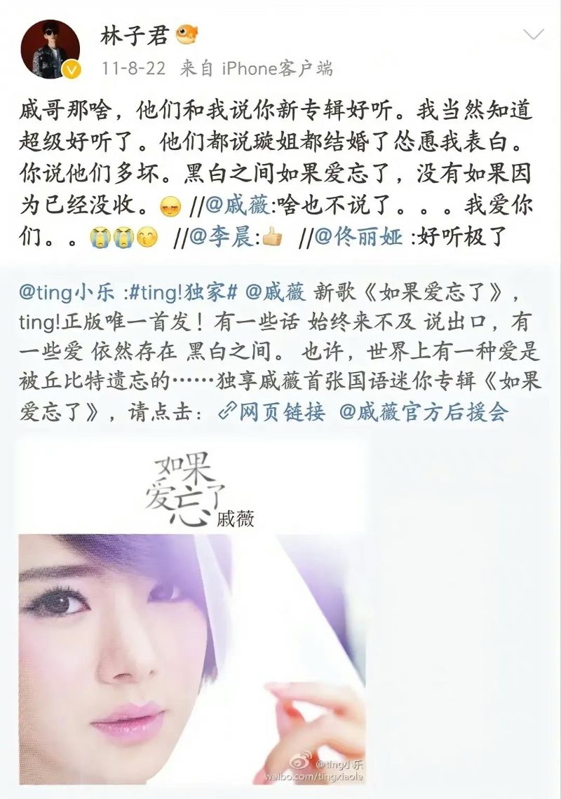 甚至還有人說,《如果愛忘了》也是戚薇為了她而唱的👇