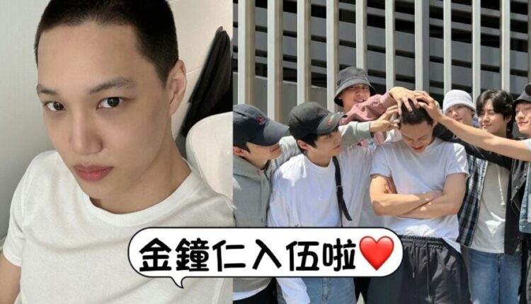 按照規定時間,金鐘仁將進入陸軍訓練所,在接受基礎軍事訓練後,將作為社會服務要員代替服役。經紀公司強調入伍地點及時間不會公開,也不會舉行特別的活動。 不過KAI本人則自行公開了寸頭照,搶先和粉絲們分享!