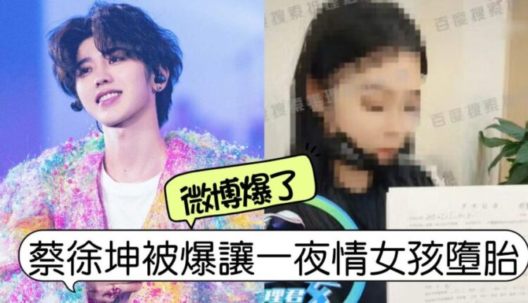 結果在26號11點,就有網友「C先生不要太勇」爆出了蔡徐坤的瓜,表示2021年5月20日,蔡徐坤和一名C女生在KTV經過朋友介紹認識,隨後兩人發生一夜情。一個月後,C女士發現自己懷孕,蔡徐坤當下反應讓她墮胎。同年7月5日,女方自行前往墮胎。