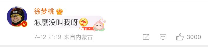 但沒想到在Cyndi的貼文下,也曾參加浪姐3的奧運冠軍徐夢桃直率的問:「怎麼沒叫我呀?」