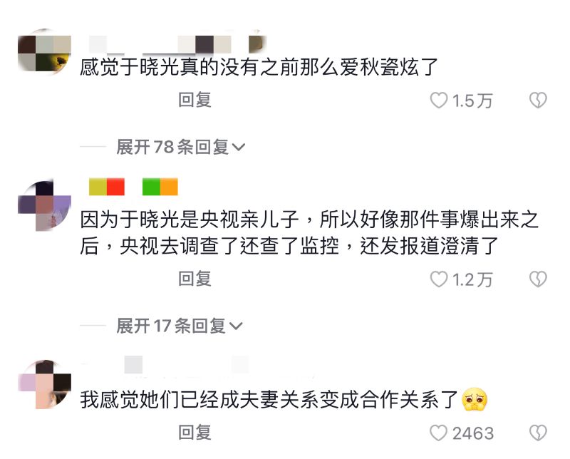 來看網友熱評,部分覺得于曉光的視頻都沒有被央視下架,表示真的並不存在出軌問題;但也有網友認為動圖說明了一切👇