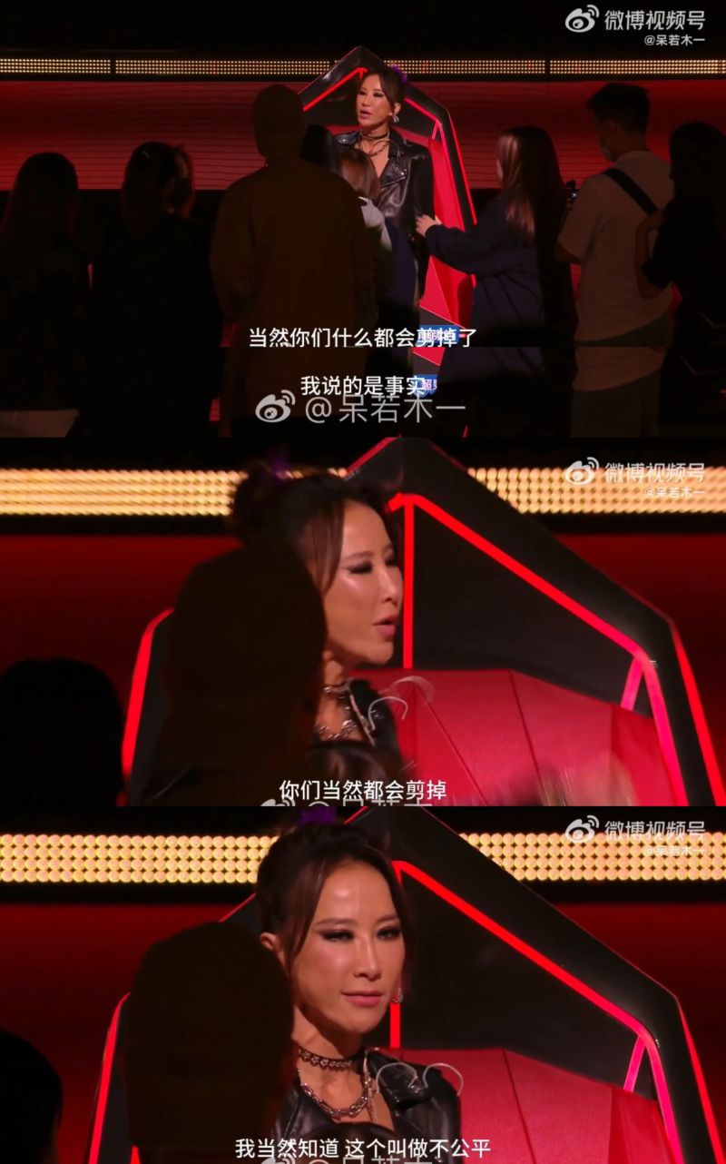 聽見好聲音工作人員說法的Coco氣得站起來:「當然你們什麼都會剪掉了,我說的是事實!你們當然會全部剪掉,我當然知道,這叫做不公平!」